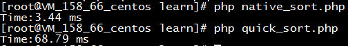 例如,我用纯PHP实现的快速排序函数和原生sort函数,排序10000个整型数字,来做一个耗时对比,结果如下: