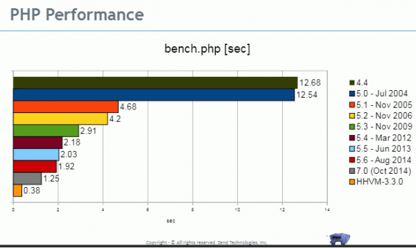 HHVM因为它的高性能而吸引了不少人的关注,一些一线互联网公司也开始跟进使用。从纯语言执行性能测试结果来看,HHVM领先了开发中的PHP7版本不少。