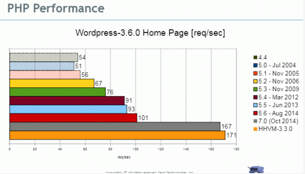 对其当前PHP5.6版本,PHPNG的10月份性能提升已经非常明显了: