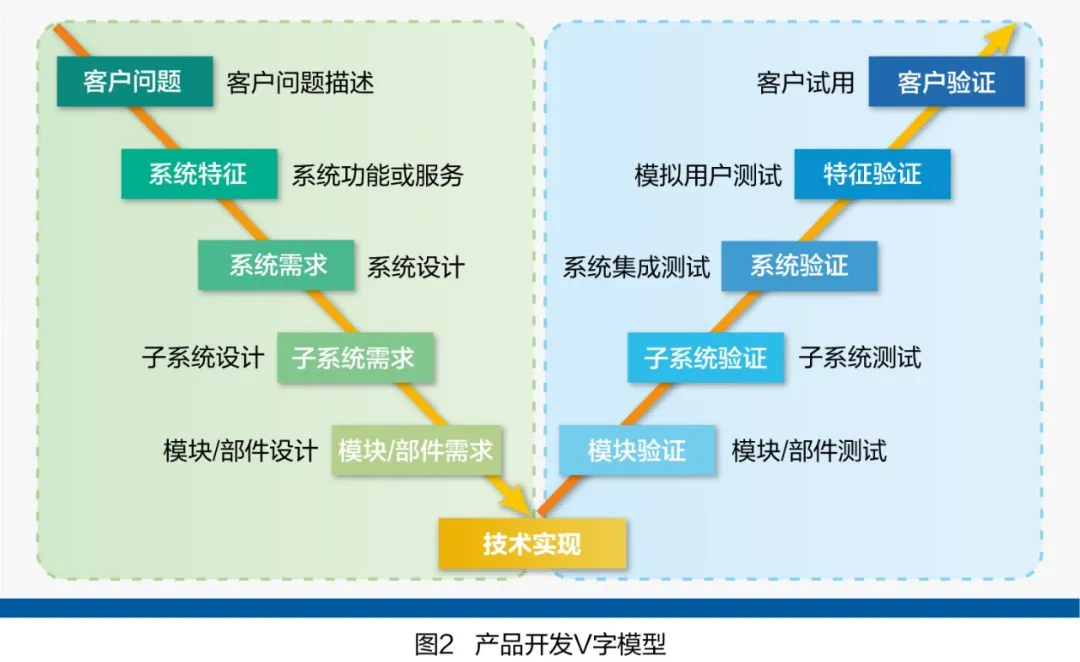 产品开发V字模型通过增量式的开发方式,将工作分解到可以独立验证的部件或功能,通过异步开发保证开发的进度和需求满足。