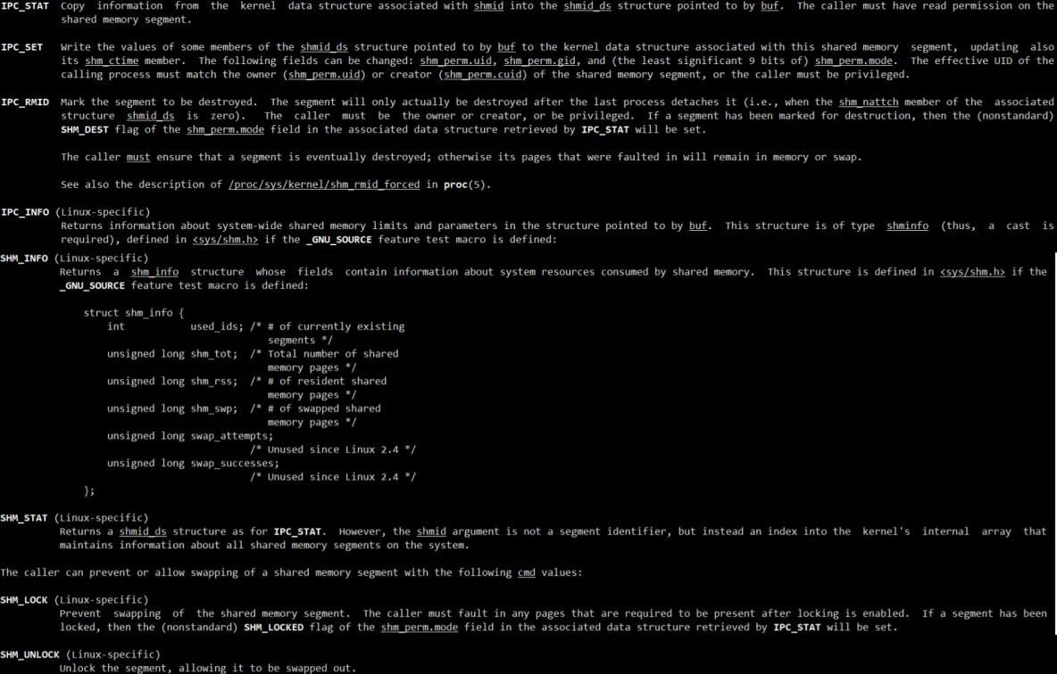 1)shmctl接口本质是共享内存的控制系统调用,和fcntl是文件控制的系统调用类似。