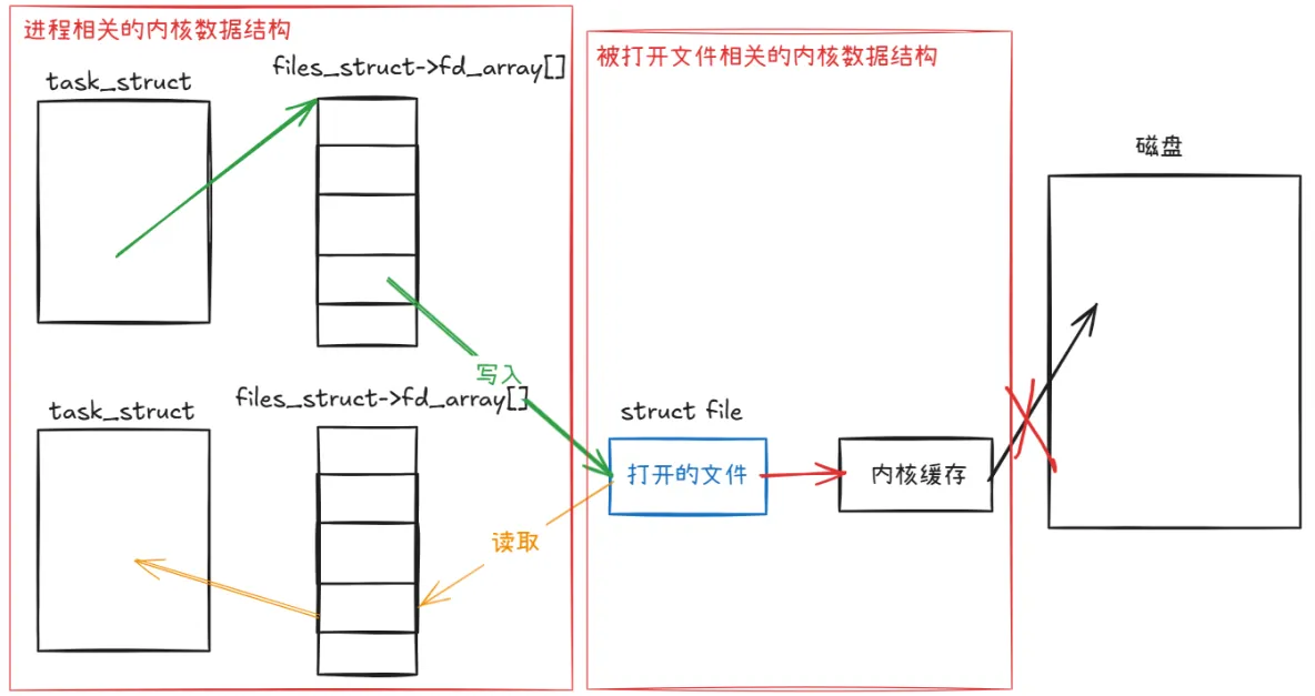 2)OS不需要通过inode才能看到文件的数据页(内核缓冲区),而是直接通过文件对象file就能查到。