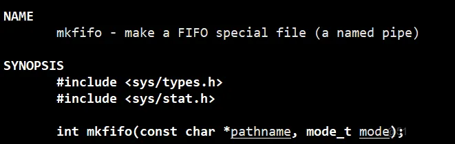 注意:如果需要创建的管道文件已经存在,则mkfifo会失败。