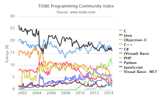 TIOBE 2014年6月编程语言排行榜:Swift能否取代Objective-C?