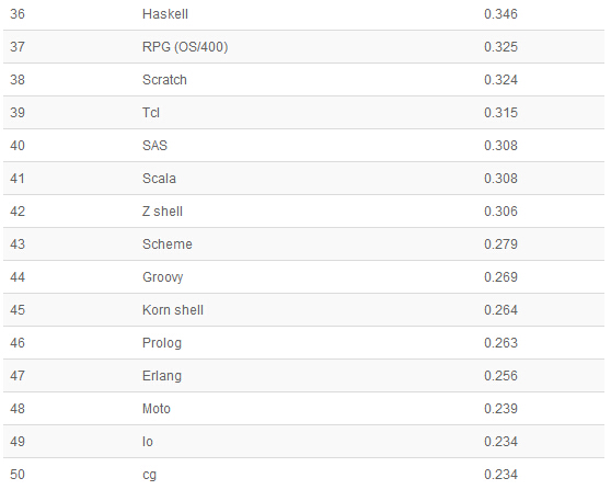 以下是21-50编程语言排名: