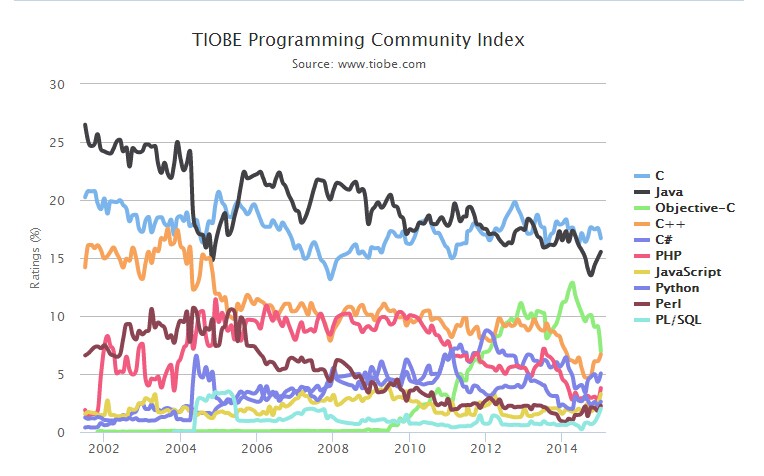 TIOBE 2015年1月编程语言排行榜:JavaScript成大赢家 |