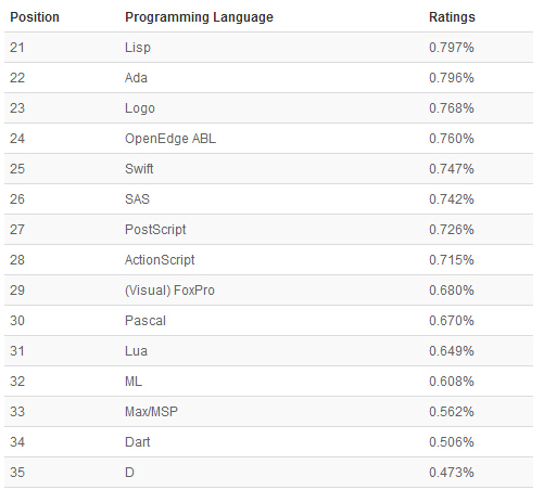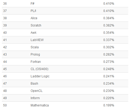 以下是21-50编程语言排名: