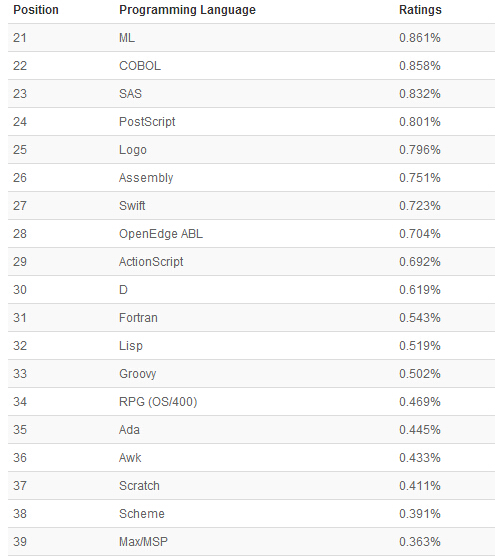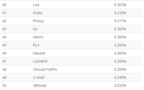 以下是21-50编程语言排名: