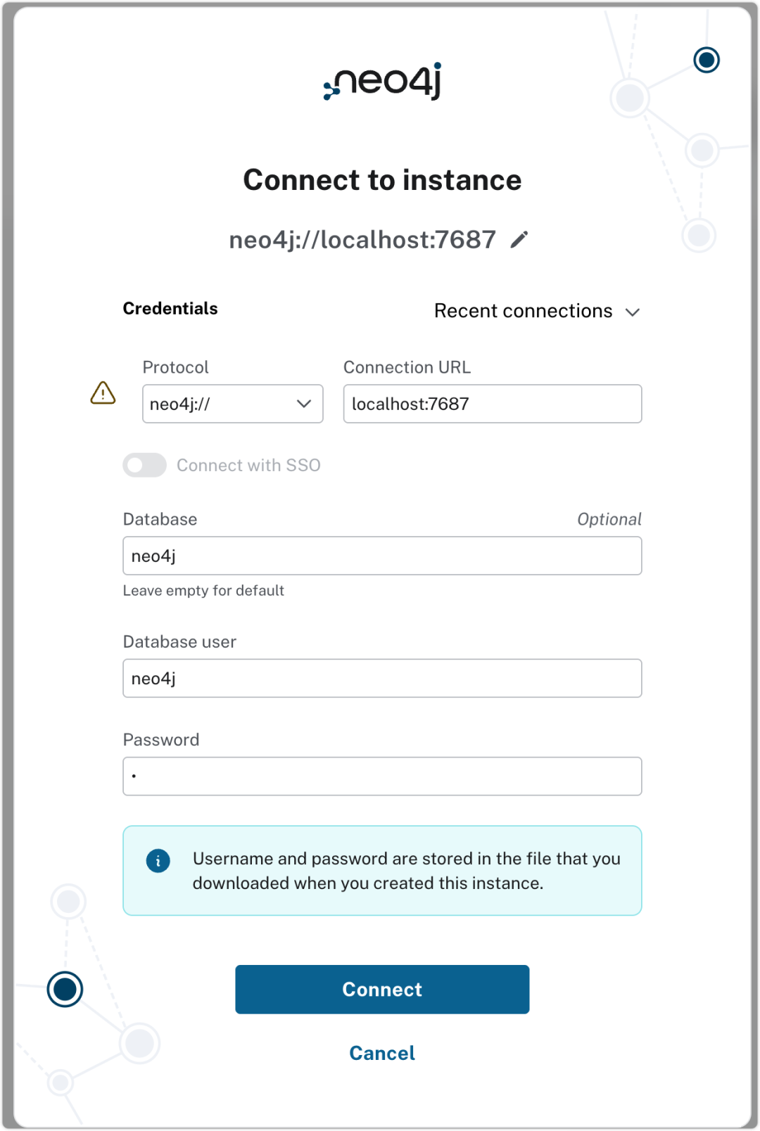 您可以通过在 Web 浏览器中打开 http://localhost:7474/ (Neo4j 的浏览器界面)来试用您的 Neo4j 容器 。默认情况下,Neo4j 需要身份验证,并在首次连接时提示您使用用户名/密码登录 neo4j/neo4j 。之后,系统会提示您设置新密码。