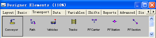 (4)建立三个输送链元素。 同建立Part001零部件元素过程相似,依次选择Designer Elements窗口的Transport页中的Conveyor元素,然后在Layout