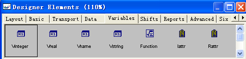 (5) 定义一个整数变量 元素。选择Designer Elements窗口的Variables页中的VInteger元素,然后在Layout
