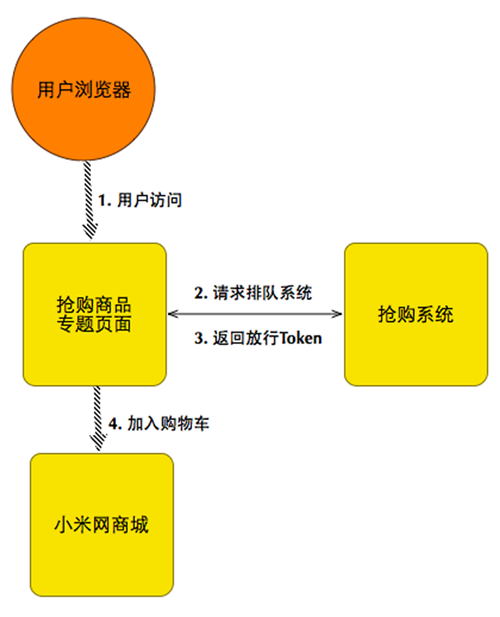 10点整,一波流量高峰即将到来,几百万用户将准点挤入小米网的服务器。而首先迎接压力冲击的,就是挡在最前面的抢购系统。