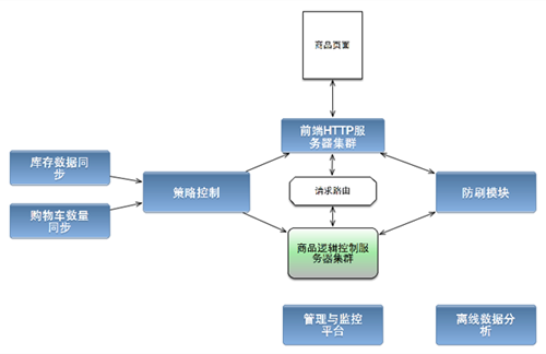 这两个模块用于抢购过程中的请求处理,系统中还有相应的策略控制模块,以及防刷和系统管理模块等(图3)。