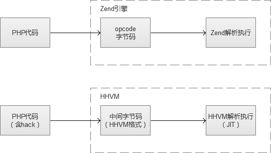普通的PHP代码,因为无法固定变量的类型,需要额外添加判断类型的逻辑代码,这样PHP代码是不利于CPU执行和优化的。因此,HHVM通常需要用到Hack写法(为了兼容某种特性而额外添加的技巧性质的代码)的PHP代码来“配合”,就是为了让变量类型固定,方便虚拟机编译执行。PHP追求以一种形式来容纳一切类型,而Hack则可以将被容纳的一切标记上确定的类型。