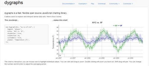Dygraphs 是一个开源的 JavaScript 图表库,最适用于极端大数据集。它是开箱式互动,通过缩放甚至可以支持手机。