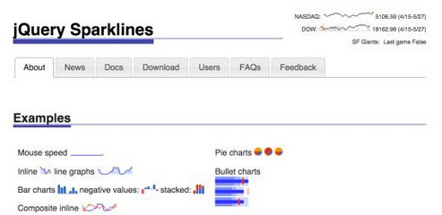 我们一直在谈论那些能搞定一切的重量型的库。但有时,你需要的是针对简单的任务简单些的东西。jQuery Sparklines 插件提供了一个合适的解决方案。它能够被用来生成迷你型的小内嵌图表,刚好足够去表现趋势——只需要最小量的编码。适用于大多数现代浏览器包括更老的IE6。