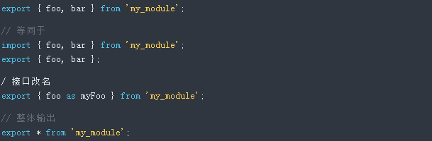 如果在一个模块之中,先输入后输出同一个模块,import语句可以与export语句写在一起。