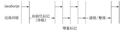 “步进”就让JavaScript应用逻辑执行一小会儿,垃圾回收与应用逻辑交替执行直到标记阶段完成。
