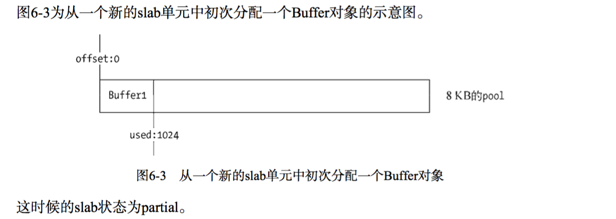 当再次创建一个Buffer对象时,构造过程中将会判断这个slab的剩余空间是否足够。如果足够,使用剩余空间,并更新slab的分配状态。