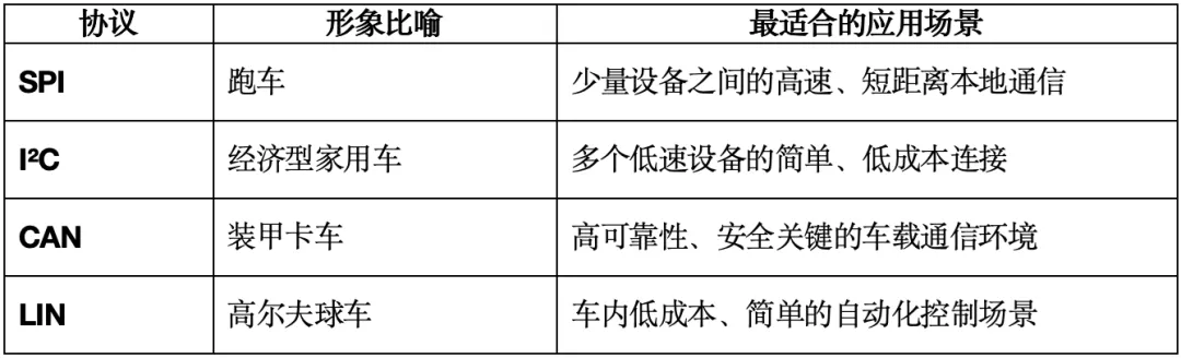 因此,在实际汽车电子系统中,SPI 通常作为传感器与控制器之间的底层通信接口,并与更高层的诊断、校验和功能安全机制配合使用。