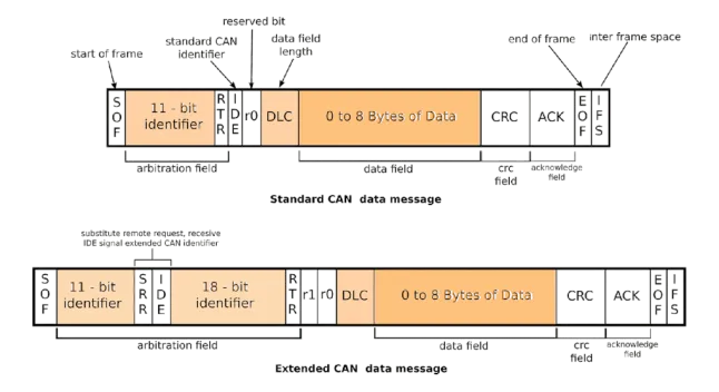 CAN 不使用设备地址,而是通过报文标识符(ID)来定义消息内容和优先级。