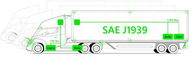 SAE J1939 特别适合重型车辆的动力系统和整车管理,其典型应用包括: