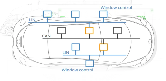 - LIN:常用于车身舒适性功能中的低速、低成本节点通信;