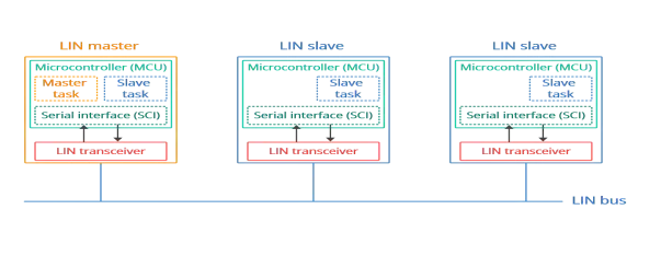 LIN 采用单主多从(Single Master – Multiple Slave)的通信架构: