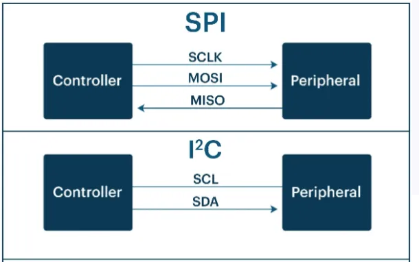 - 高速率:SPI 支持较高的通信速率,通常可达数 MHz 甚至更高,适合陀螺仪、加速度计、磁传感器等高采样率传感器;
