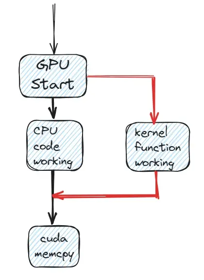 GPU 可以开始运算,在 GPU 完成计算前,CPU 并不会阻塞在这行代码,而是会继续执行后面的主机代码。