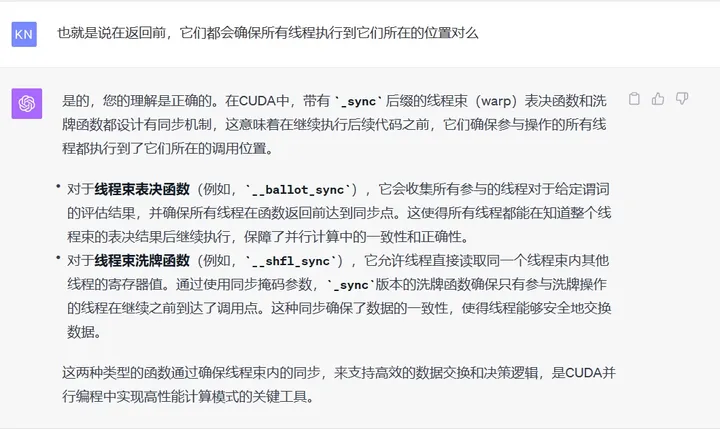 Chat-1:关于线程束表决函数和线程束洗牌函数的同步功能