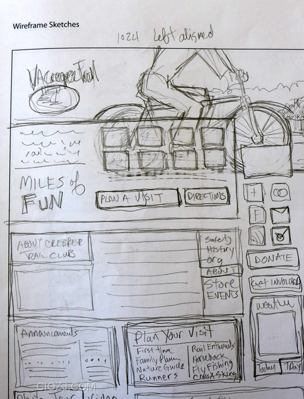 这就是网站的效果图。你能看出草图到线框图再到效果图的变化吗?