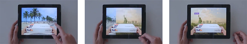 FedEX想要给人传递是送货迅速的概念。围绕这个想法,借助IPAD等平板电脑的滑屏功能,通过背景图的快速切换生动地予以诠释。如图,包裹刚刚还在夏威夷,手指一扫就变成了纽约,是不是很快呢?所谓弹指间快递到家。这种类型的创意简单而有趣,不少商家都乐意使用,比如下面这个案例。