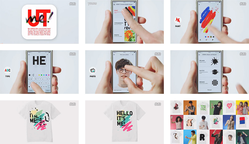 Shake,Shake!你只需要摇一摇,图案就完成了! 优衣库推出的互动营销方案总会令人眼前一亮,此次也不例外。这一次,优衣库让你自行设计T恤,并提供了三种方式即拍照,字体编辑,以及自行绘画(笔触效果是既定的)。三种方式可以进行组合,设计过程中通过“摇一摇”可以获得诸如切割,混合等团效果。待图案设计完毕上传至网站,便可以进行购买。 DIY图案的创意并不新鲜,但通过移动媒体的方式执行还比较少见。更重要的是,UTme的设计方法适用于普罗大众,而不仅限于专业人士,即使闭着眼睛摇手机,最终的图案效果都不会差。这就大大降低了DIY的门槛,让更多用户参与,即使不购买T恤,也是一次表现个性的机会,人们都乐此不疲。不得不说,It’s amazing!