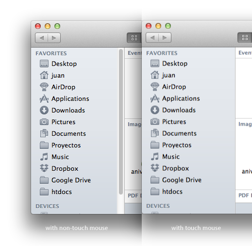 8.OS X - µ±ÏµÍ³¼ì²âµ½ÄãÕýÔÚʹÓÃûÓд¥¿Ø¹¦ÄܵÄÊó±êʱ£¬Ã¿¸ö´°¿ÚÖж¼»á×Ô¶¯³ÊÏÖ²à±ß¹ö¶¯Ìõ¡£