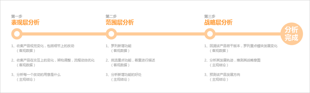 2、这套方法适用于单品的重大版本迭代分析(小版本没有重点分析的必要),在多产品横向对比上还有待扩展。