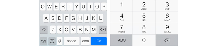 在支付场景中,是否考虑了用户在乘坐交通工具过程中进行支付的场景?如用户急需对某件商品进行支付,但在摇晃的车厢里无法快速打字,那么设计支付密码时,在不牺牲安全的前提下,是否可以考虑以数字键盘替代全键盘呢?以iPhone 5s为例,全键盘每个字母按键的大小是52px*76px,而数字键盘每个数字按键的大小是220px*108px,按键的可控区域越大,用户密码的输错率也能降低。