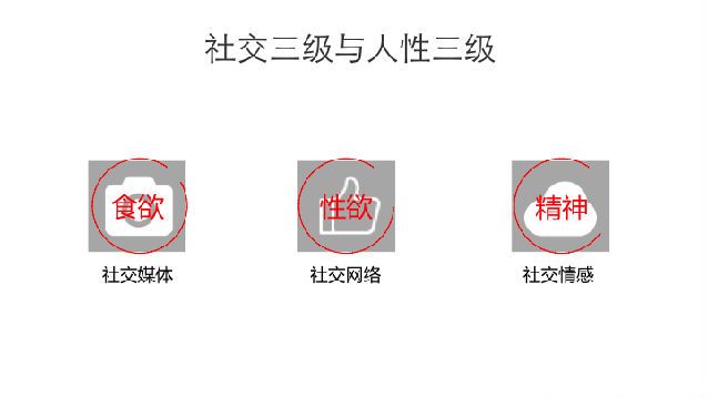 社交媒体(食欲),社交网络(性欲),社交情感(精神)。首先是每天满足读读报纸;后面是找个朋友谈天说地,春暖花开;最后用《仙剑奇侠传》游戏里的一句话,相爱不如相知,这就是社交情感,属于精神层面的,海内存知己,天涯有肥皂的心情就是这样的。