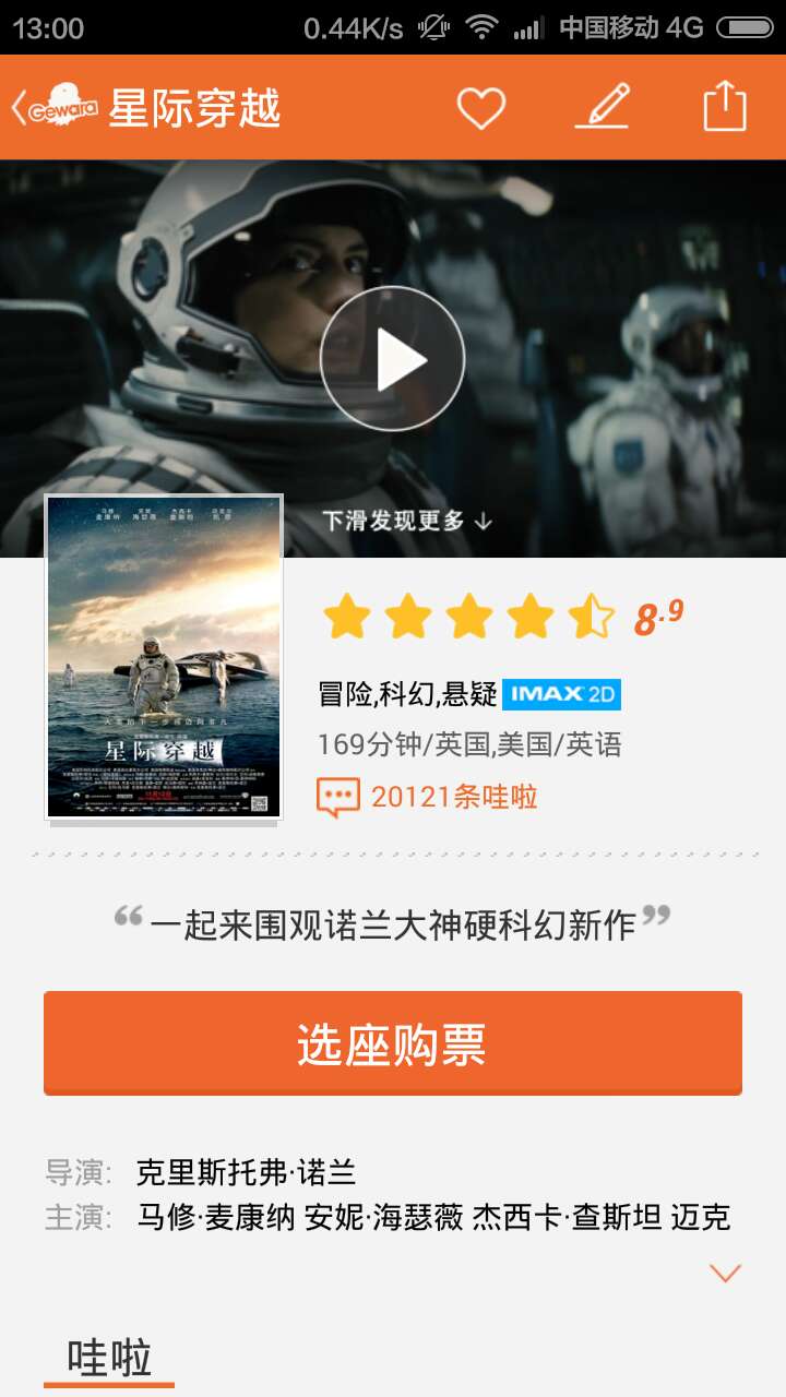 这3000张预售票在11月7日当天就创造了格瓦拉平台上《星际穿越》十万的关注数,而这一轮预售更大的爆发力则是随后评论数的爆棚,该片在格瓦拉上的评论(格瓦拉上称为哇啦)数量超过2万条,这与其他竞争对手App上该片的评论数量相比,确实有着压倒性的数量级优势。
