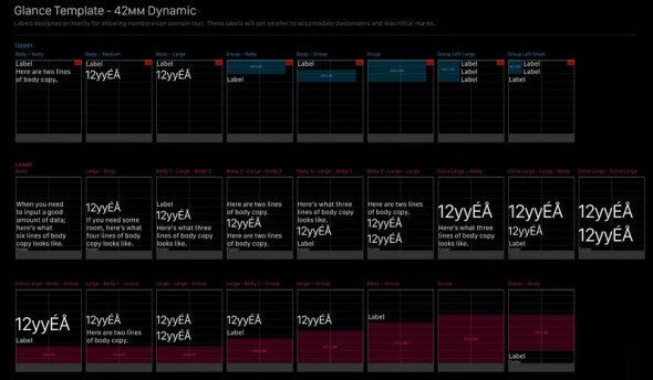 È·¶¨ÁËÒª³ÊÏÖÄÄЩÐÅÏ¢Ö®ºó£¬ÄÚÈݵIJ¼¾ÖͬÑùÒªÌåÏÖ³ö²ã¼¶¡£ÔÚ1.5´çµÄÆÁÄ»¿Õ¼äµ±ÖУ¬Í¨¹ý²»Í¬µÄ×ֺš¢×ÖÉ«¼°·Ö×é¹ØÏµÀ´³ÊÏÖ³öÐÅÏ¢µÄÓÅÏȼ¶ÓëÂß¼¹ØÏµ£¬ÕâÒ²ÊǶÔÉè¼ÆÊ¦»ù±¾¹¦µÄ¿¼Á¿¡£²»¹ýºÃÏûÏ¢ÊÇ£¬Apple¹Ù·½ÎªÎÒÃÇ×¼±¸ÁËÒ»ÕûÌ×Glance²¼¾ÖÄ£°åÓÃÀ´²Î¿¼£¬38mmºÍ42mmÁ½¿î¹æ¸ñ¶¼ÓаüÀ¨ÔÚÄÚ£¬²¢ÌṩSketch¸ñʽ¡£