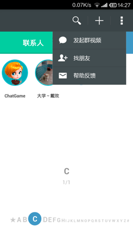 2.入口 单人聊天界面已经设计好,然后就是从主页发起群视频