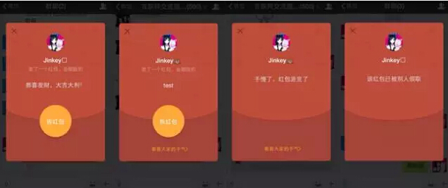 二是以往基于web的红包页面经常会出现“妈的页面还在loading红包就没了”“红包来了却连不了网是怎样一种体验”等等的用户抱怨,而原生的页面因为放在本地不需要远程加载,只需要传输简单的红包ID,发送者等少量信息即可通知客户端显示红包页面,可以减少联网时间和降低网络状况对抢红包的体验流畅度,让用户抢不到红包都不会觉得是因为微信没优化好,而是自己太幸福(没单身的手速慢,哈哈)。下图为几种红包“拆”页面(大家来玩找不同,嘻嘻):