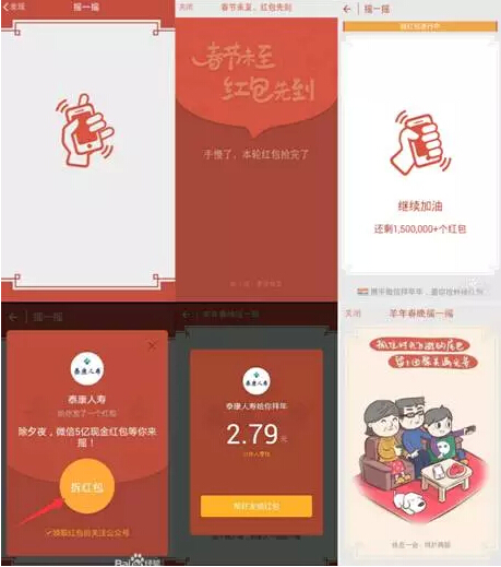 微信在春节前还额外的增加了摇一摇的红包入口,给一直被认为“约炮神器”的摇一摇洗白(哈哈,开玩笑啦!)。加速度传感器也很具有互动性,却一直隐藏在手机里面,使用率不如摄像头和话筒。摇一摇红包很好的利用了每个人手机里面“雪藏”的硬件。在“红包肯定是要发的”和“摇一摇功能的代码本来就有”的两大前提 下,增加摇一摇红包这功能并不会增加多少开发量和成本,因为既然红包要发,无论用什么形式发,后台的负载均衡和高并发分流是肯定要做的,摇一摇的代码在约 pao的时代就已经很完善了基本上不用改,接入红包的逻辑就可以了,所以机会成本很低。那为什么一定要发红包呢?因为上一年已经带坏头了,示范效应导致支 付宝也来分一杯羹,微信能不发吗?
