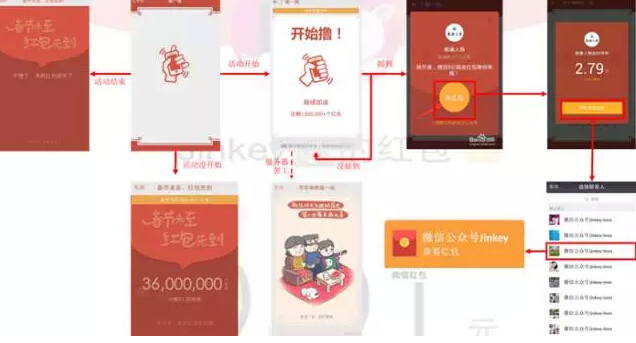 2015年的红包的拆和抢是分离的,需要点两次,因此会出现抢到红包了,但点开后告知红包已经被领完的状况。进入到第一个页面不代表抢到,只表示当时红包还有。详见本文Jinkey在第五部分的说明。