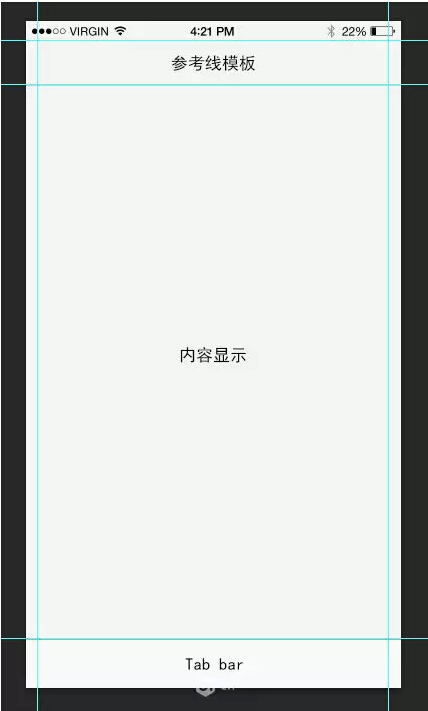 上下的参考线很容易设置,因为是根据IPhone自身系统设置的,左右的参考线我习惯设置为24px,也就是显示内容距离边框的距离。这不是绝对的,我和总监研究过,究竟是设置为左右30px还是24px比较好,通过对国内国外各种APP的对比,觉得24px更适合一些,不宽不窄,这个完全是设计师个人的设计习惯,所以不要当成什么规范,确切的说,整个屏幕你都可以随便做,但是我们这里说的是正常页面。
