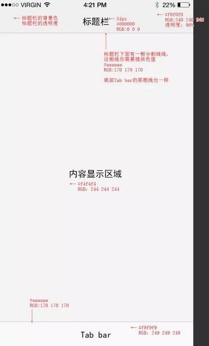 3.标题栏下方以及Tab bar上方其实有一条分割线,需要提供色值;
