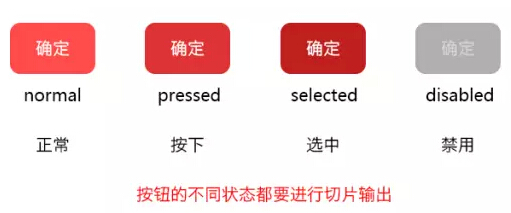 每种图标或者图片如果有不同状态,每一种不同的状态都需要进行切片输出。