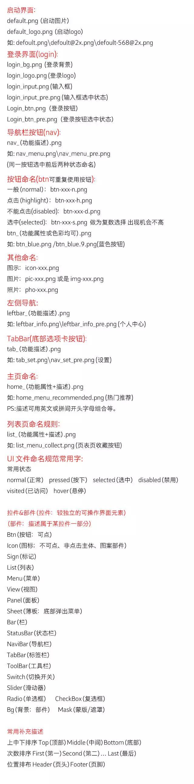以下是常用命名,这是我的命名习惯,并不是规范,所以要灵活,如果实在不知道英文,就用拼音代替也行。