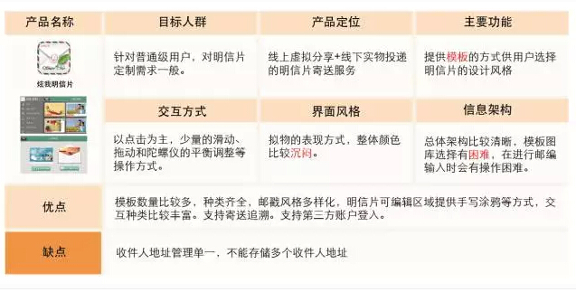 举个栗子:明信片APP调研其中之一(竞品前期可以做成这种卡片)