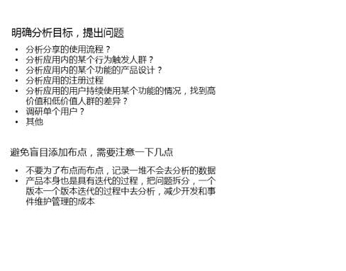 今天讲的这些就是分享 一些关于,首先为什么做这一件事,其实也是从当初的流量到用户到收入的模型,不要再去想有没有办法,应该往下走,应该把步骤拆细,流量来了,是什么样的用 户,用户做的什么事,哪些事需要往细了看,去分析这些事情,他做这些事的时候每一个核心步骤到底完成了没有,或者说根本就是你做的不好,这个东西是伪需 求,这些全部要分析透彻了,这些都是可以用数据分析出来的。